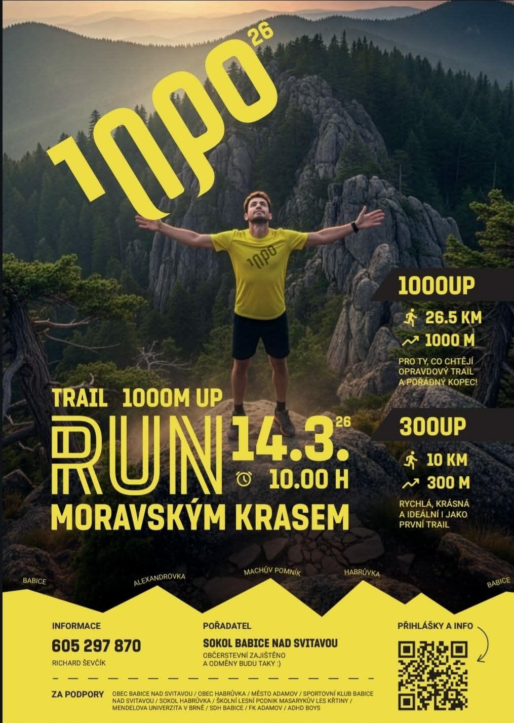 Sokol Babice nad Svitavou pořádá 14. 3. 2026 v 10:00 h běžecký závod 1000 M UP, RUN Moravským krasem.